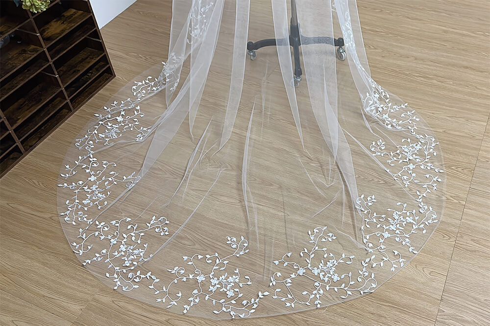 - Style: Single-Tier Chapel Length Veil (One Layer).