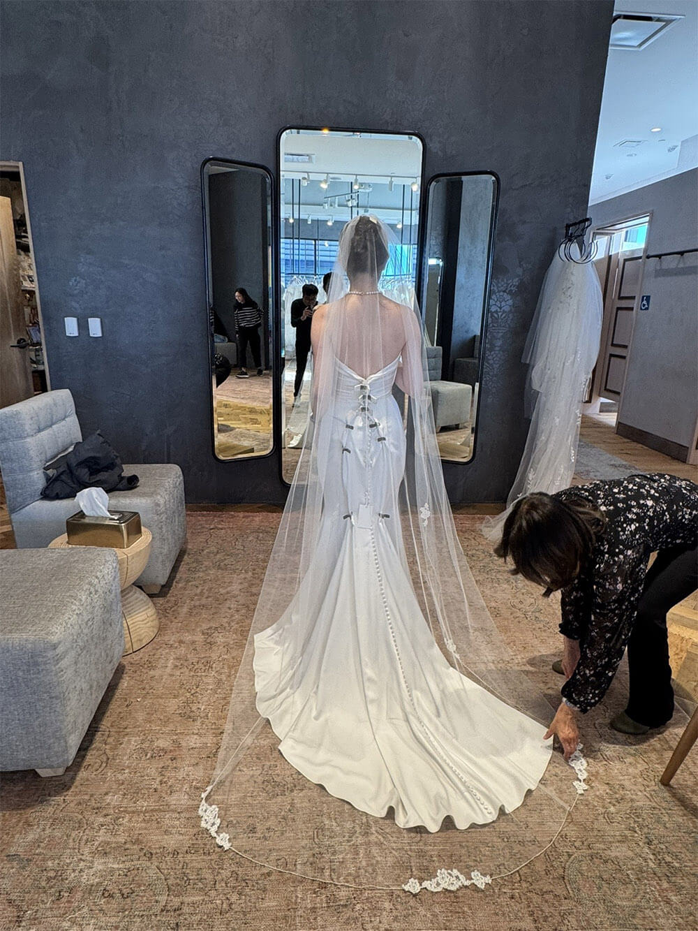 Our most popular service is our custom veil design service. We design and make beautiful custom veils tailored to match the bride’s gown in-house at our sewing studios, including our fabulous custom lace veils that we are always sharing over on our instagram.